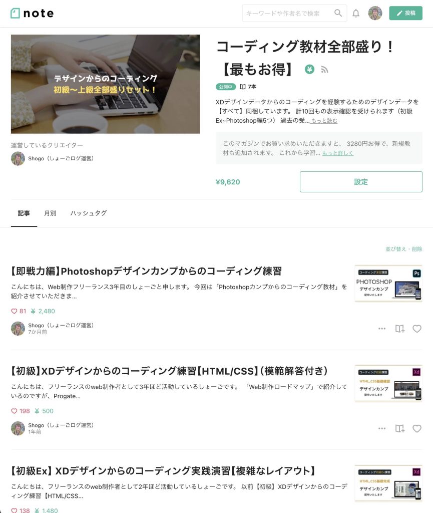 noteのマガジン閲覧方法 shogo まずはプロフィールアイコンをクリックして「マガジン」をクリックしてください。すると、購読中のマガジン一覧が表示されます。みたいマガジンをクリックしてください。マガジン内の記事一覧が見れるので、各記事で学習をすすめるようにお願いします。
