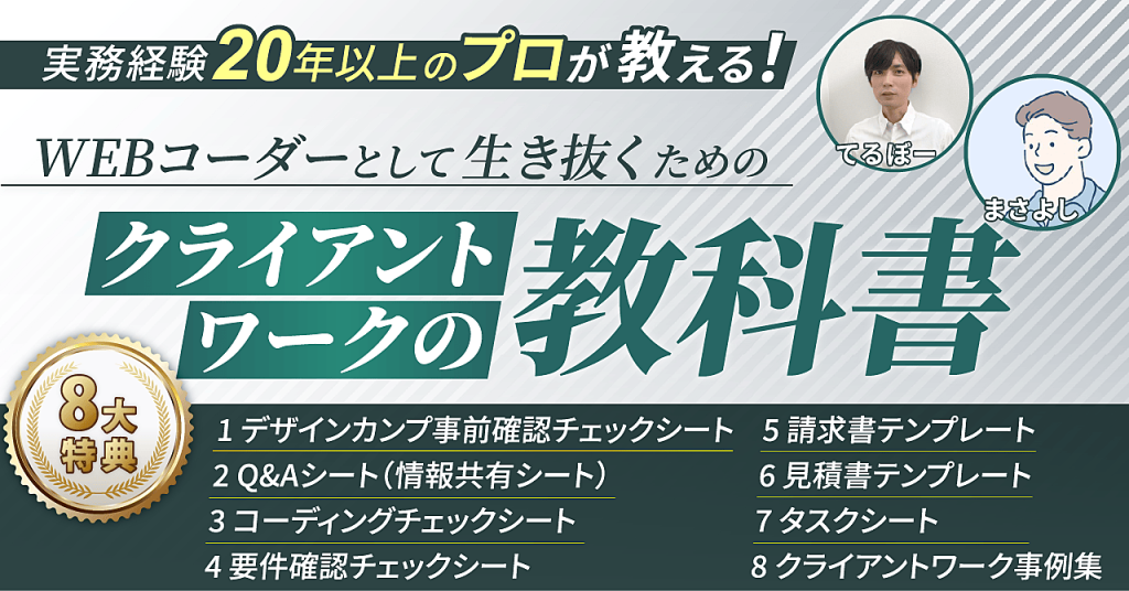進捗管理とか、共有方法とか、品質管理とか、例えば全部WEBコーダーとして”生き抜く”ための『クライアントワークの教科書』を見れば、書いてあります。